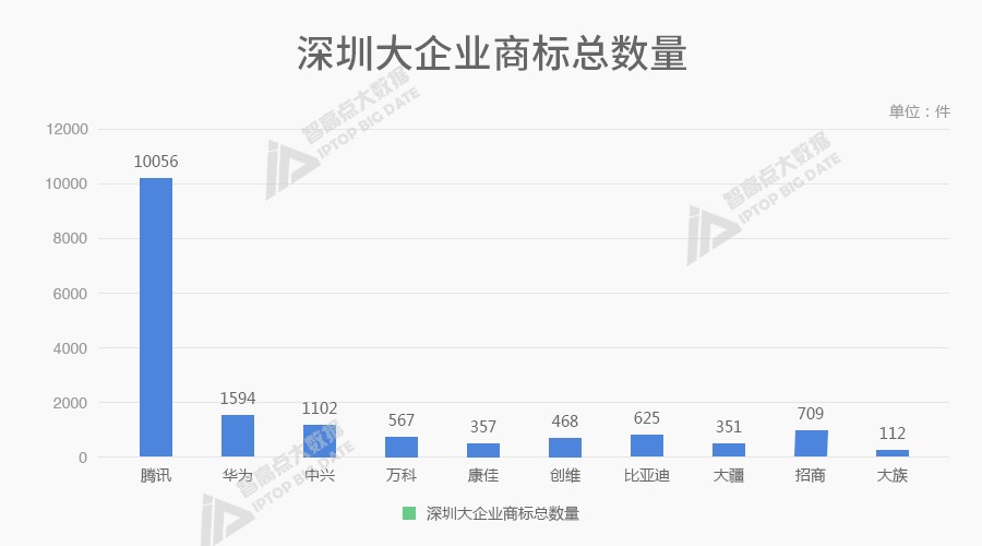 首先看冠军,互联网巨头,BAT之一的腾讯公司业务范围包括游戏、社交媒体和支付等众多热门领域,以10056个商标位列全深圳乃至全国注册商标数量之首。